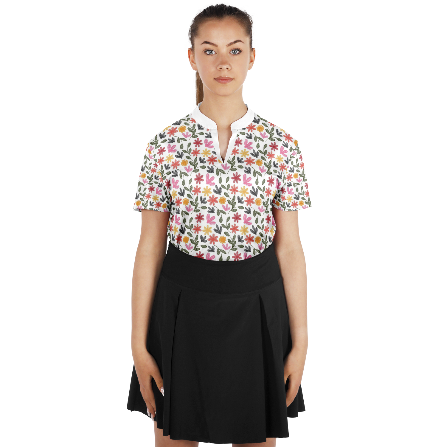 Floral Stand Up Collar Polo Shirt - AOP