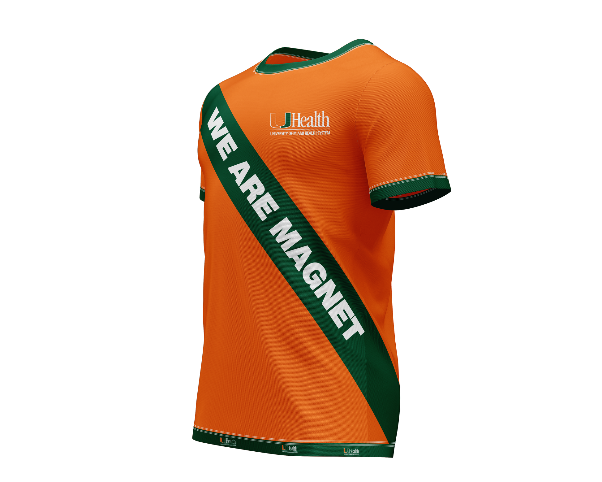 The Unisex UHealth Magnet Distinction T-Shirt combines comfort with purpose. Crafted in a relaxed fit, this bright orange tee features distinctive green sash detailing and health-focused graphics printed along the sleeve and bottom liner. Perfect for those who value both style and wellness messaging, it delivers everyday wearability with a statement. Made for anyone seeking quality basics that reflect their health-conscious lifestyle.